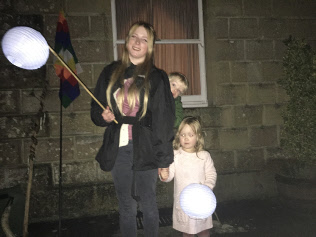 Friends start to gather for the lantern parade