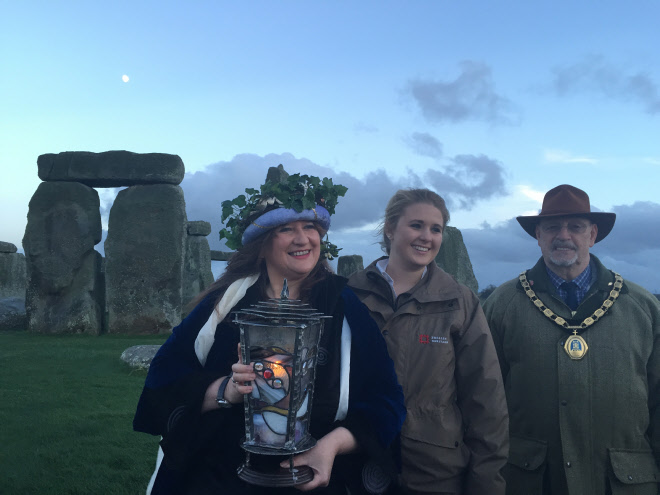 Pictured, John (Mayor of Amesbury) with a representative of English Heritage and this years lantern bearer.