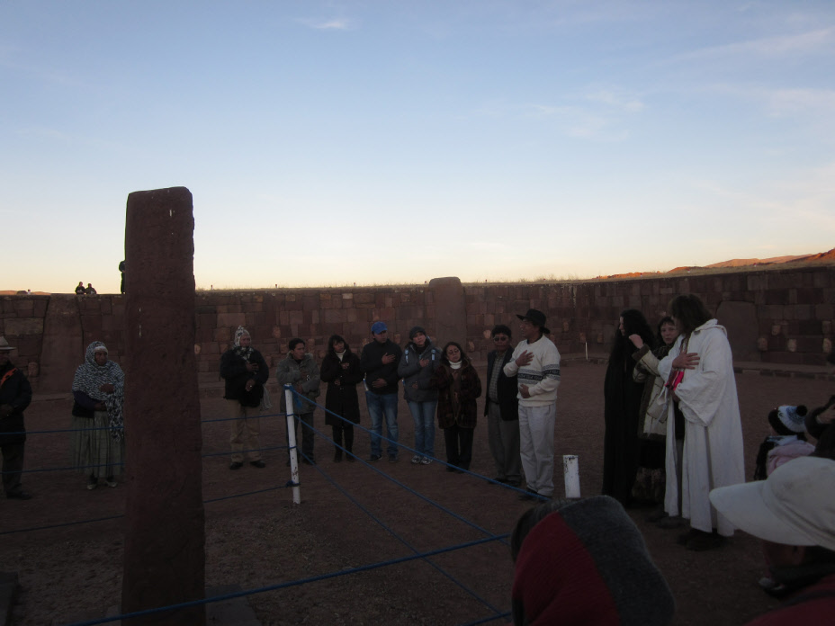 At Tiwanaku on Solstice eve we were given a special tour of the temple, and held ceremony there in the temple of the underworld / ancestors. On solstice day we were placed front row with ambassadors from around the world, and after the ceremony, were introduced to the countries president.