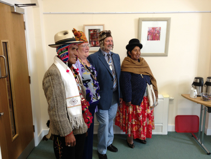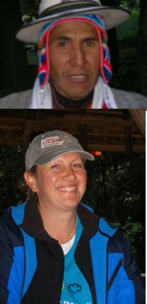 Above left: Francisco and Euralia bless our food Above: Mayor Jan trying on an Amauta hat for size.